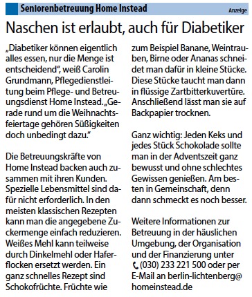 Berliner Woche: Naschen ist erlaubt, auch für Diabetiker