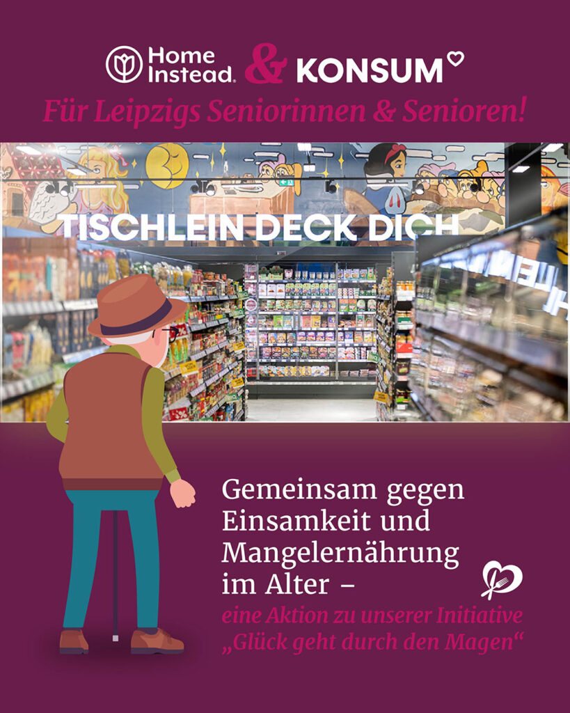 Gemeinsam schenken wir Seniorinnen und Senioren in Leipzig gesunde Mahlzeiten, Nähe und Freude – mit unserer Initiative „Glück geht durch den Magen“.