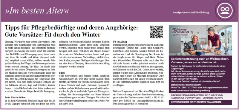 Start » Limburg-Weilburg » Lahnpost: Tipps für Pflegebedürftige und deren Angehörige: Gute Vorsätze: Fit durch den Winter