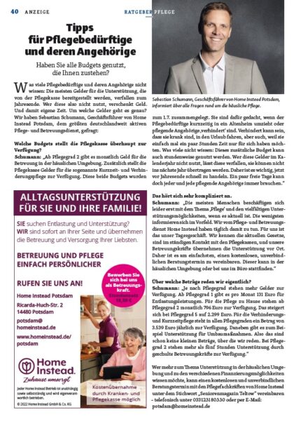 Seniorenmagazin Teltow: Tipps für Pflegebedürftige und deren Angehörige