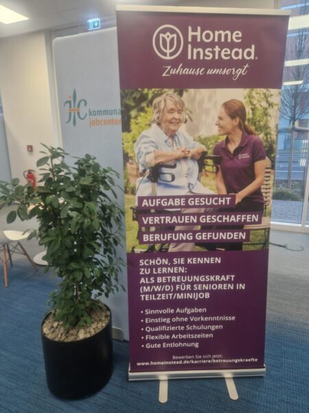 Zwischen 9 und 15 Uhr nutzten zahlreiche Interessierte die Gelegenheit, in persönlichen Gesprächen mit Arbeitgebern aus der Region in Kontakt zu treten. Unsere Personalreferentin Sarah Heller und unser Servicedisponent Cedric Amtsfeld war vor Ort und informierte über Karrieremöglichkeiten bei Home Instead. Sie führte spannende Gespräche mit potenziellen Bewerberinnen und Bewerbern und beantwortete Fragen rund um den Einstieg in die Pflegebranche.